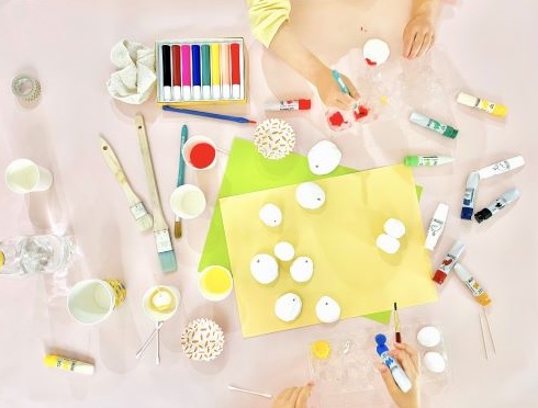 糊やマーカーなどを使用します。 汚れてもいい服装またはエプロン/スモッグ持参をおすすめします。