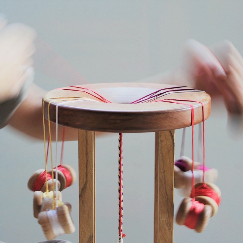 色とりどりの糸が玉の運びにつれて、美しい紐に生まれ変わっていく楽しさを体験しませんか。飛鳥時代から組まれ、受け継がれてきた組紐のもつ伝統美をご紹介しながら、完成まで指導いたします。