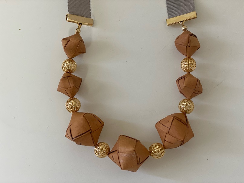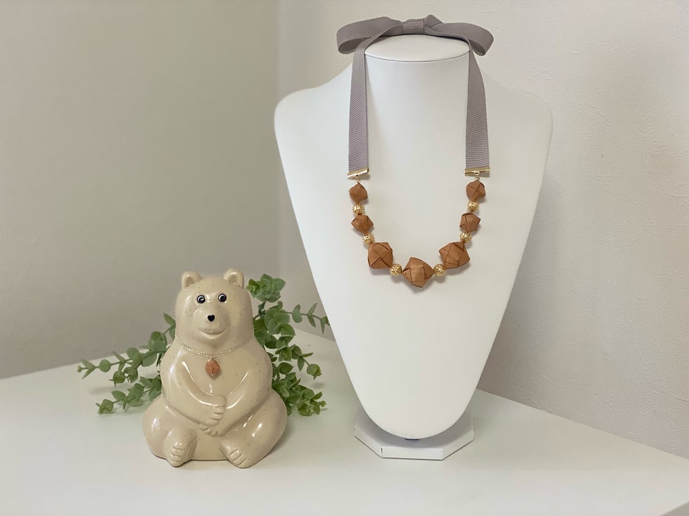 スウェーデンから輸入した白樺をテープ状にしたものを編んでキューブを作ります。そのキューブを他の素材と組み合わせてつなぎ、ネックレスを作ります。リボンの長さはお好みで変えられ、ワンピースやTシャツなど幅広いアイテムにピッタリです。また、白樺キューブを使ったアクセサリーは存在感がありながらもとても軽やか。普段使いからお出かけのコーデでもどちらも装いを華やかするアクセサリーです。 丁寧に指導いたしますので、初めての方もぜひ安心してご参加ください。 リボンの色はブラックかグレーからお選びください。