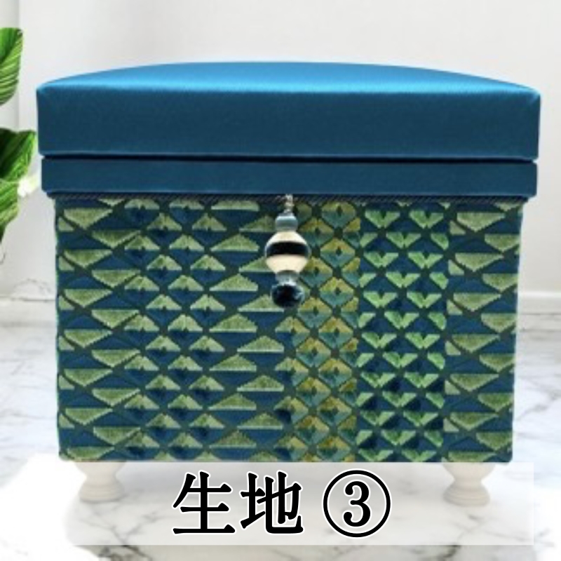 サイズ:10K(幅43x奥30x高36p※脚高抜き) ファブリックは3種類から選んでいただきます。 生地:ウィリアムモリスの生地2種類、フランスの高級ベルベット生地が1種類。 @ウィリアムモリス「リトルチンツ」Aウィリアムモリス「ブルーベル」Bオズボーン&リトル「スモーキー」 このほか、会場にて、取手や脚をつけるオプションをつけることができます(別料金17,600円)。 ※柄の出方は画像と少し異なる場合があります(中心は揃えます) ※仕様はその他欄の資料参照 ランチタイムを挟んで作るワンデーレッスンです。(ランチは1時間、各自ご自由におとり下さい) 出来上がり作品はお持ち帰り、またはご配送になります。ご配送の場合、一旦お預かりして後日発送致します。 会場では、インテリア茶箱のミニ展示会も同時開催いたしますので、合わせてお楽しみください。